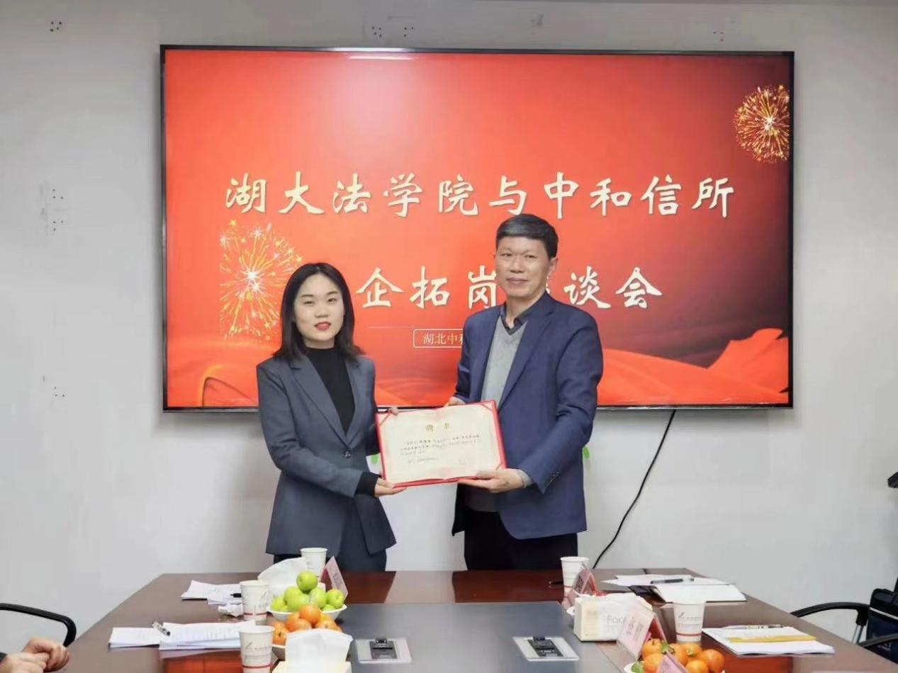 公司党委书记焦新曦对中和信所长期以来对公司人才培养及就业提供的大力支持表示感谢,希望与中和信所进一步加强交流,完善公司与律所协同育人机制,培养卓越法治人才,促进员工能力提升并顺利就业。副书记张梦婵认为中和信所给湖大法科生提供了实践平台,通过律所实习完成从公司走向社会的第一步,加深了对法律的认知与思维领悟。副经理江岚回顾了双方的合作历程,感谢各位律师对联合培养机制的大力支持,将完善实务课程、拓展交流渠道促进交流水平再上台阶。徐梦醒老师表示希望中和信所律师能够参与到本科生的专业学习和法律实践课程中来,比如法律谈判、法庭辩论、模拟法庭等。