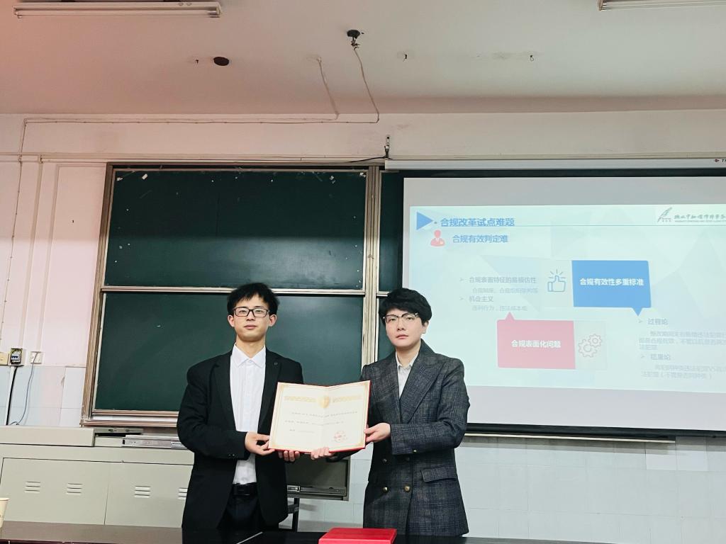 余飞律师首先以“中兴”和“阿里巴巴”的案例引出企业合规的基本内涵;随后,他结合深圳市宝安区检察院的试点经验和企业合规文件分析了合规管理流程和目前合规改革试点遇到的难点问题。此外,余律师还针对律师在企业合规中发挥的作用进行了详细阐释,并重点分析了当前“双减”背景下教育培训机构的企业合规现状。最后,他通过推荐企业合规经典书目,讲解项目书,分析经办的两个经典案例等形式,让同学们更加深刻地体会到企业合规在当前法学理论及法律实务中的重要性。