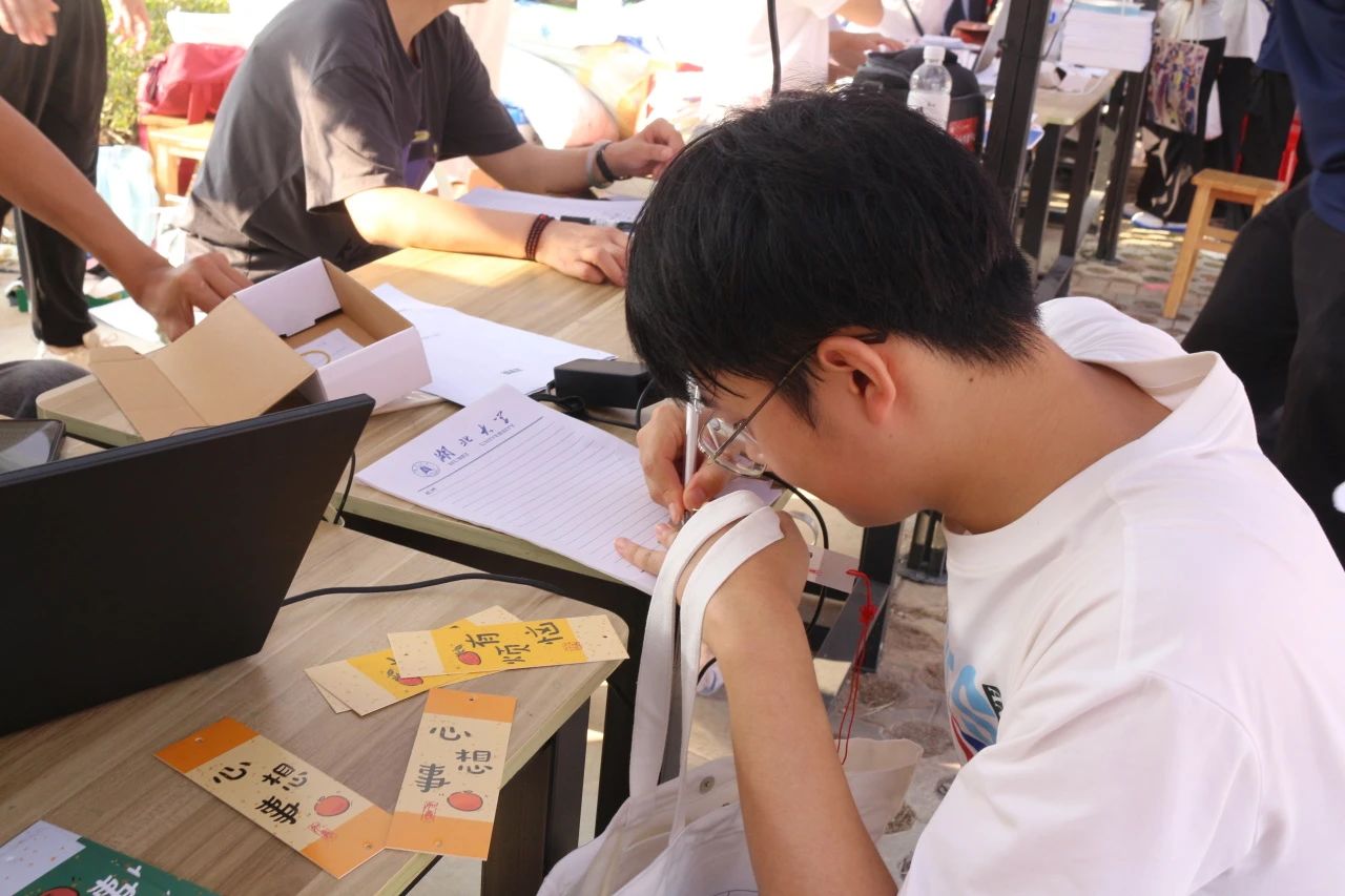 活动现场还设置了一面签到板,欢迎各位同学来抽取自己的“上上签”。随着新生们将上上签一一挂在签到板上,他们的笑容和期待也一同被定格在了这个美好的瞬间。在这里,每一位新生都种下了自己的希望之种,期待着在未来的四年里,它们能够生根发芽,开出最美丽的花朵。