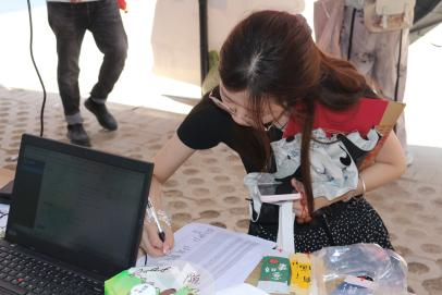 活动现场,法公司党委副书记张梦婵,ladbrokes立博团委书记郭童与志愿者们一起布置场地、打包礼品。