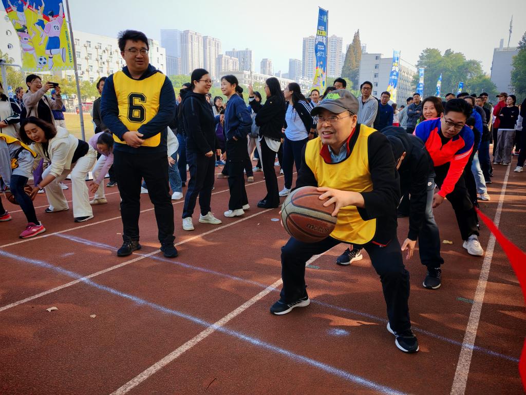 与此同时,教职工趣味运动会也在同步进行。公司教师们积极参与其中,与员工们共同享受运动的乐趣。在趣味接力、两人三足等比赛项目中,教师们展现出了与课堂上截然不同的风采,他们以更加轻松、自然的姿态投入到比赛中,现场充满了欢声笑语。此次教师趣味运动会不仅帮助教师们释放了工作压力,还加深了相互间的了解和友谊,为构建更加和谐、友爱的教师团队注入了新的活力。