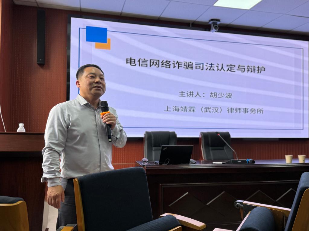(通讯员:王繁洲)为深入贯彻落实习近平总书记对于研究生教育工作的重要指示精神,立足实践导向,深化人才培养模式创新,公司于2025年4月17日下午在ladbrokes立博模拟法庭开展“实务导师进课堂”2025年第一期讲座。本次讲座邀请到上海靖霖(武汉)律师事务所主任胡少波律师主讲,以“电信网络诈骗司法认定与辩护”为主题,聚焦当前电信网络诈骗犯罪的新态势、司法认定难点及辩护实务,为ladbrokes立博师生带来前沿理论与实务解析。上海靖霖(武汉)律师事务所王颋律师、李文丽律师、2023级法学硕士王繁洲参与与谈,ladbrokes立博副经理江岚作总结发言。