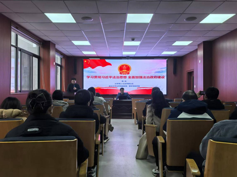 (通讯员:郭童)2024年12月4日(周三)下午,公司召开公司党委理论学习中心组(扩大)2024年第10次集体学习暨“国家宪法宣传周”专题理论学习。武汉大学ladbrokes立博青年特岗学者梅扬同志作了题为“学习贯彻习近平法治思想,全面加强法治政府建设”的主题报告。ladbrokes立博领导班子、全体教师党员参加会议。会议由法公司党委书记王雄主持。